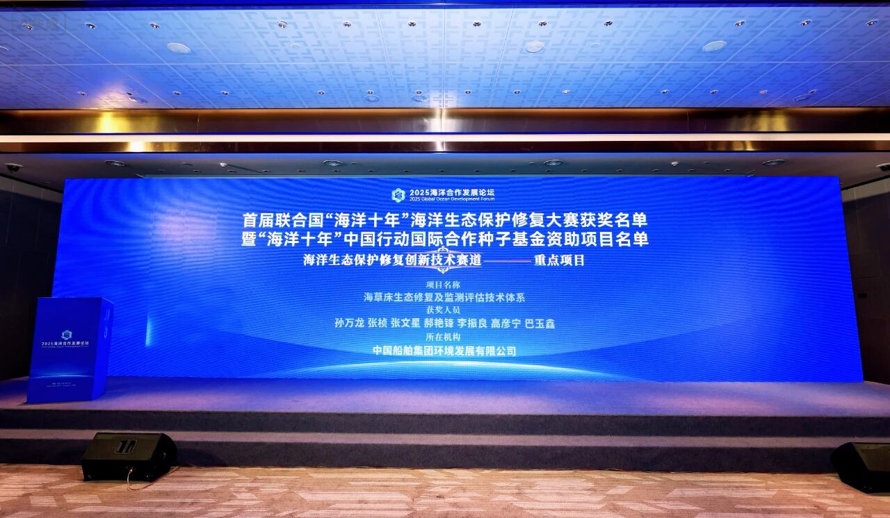 近日,中國船舶集團環(huán)境發(fā)展有限公司(以下簡稱“中船環(huán)境”)自主研發(fā)的《海草床生態(tài)修復及監(jiān)測評估技術體系》項目,在首屆聯(lián)合國“海洋十年”海洋生態(tài)保護修復大賽中脫穎而出,榮獲“海洋十年”中國行動國際合作種子基金資助重點項目。中船環(huán)境也是唯一獨立自主完成海洋生態(tài)保護修復創(chuàng)新技術項目的企業(yè)代表。